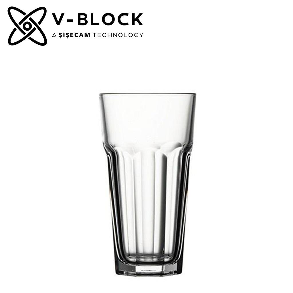 Ποτήρι Pasabahce γυάλινο νερού δύσθραυστο V - block casablanca διάφανο 365 ml 14,8x8 cm