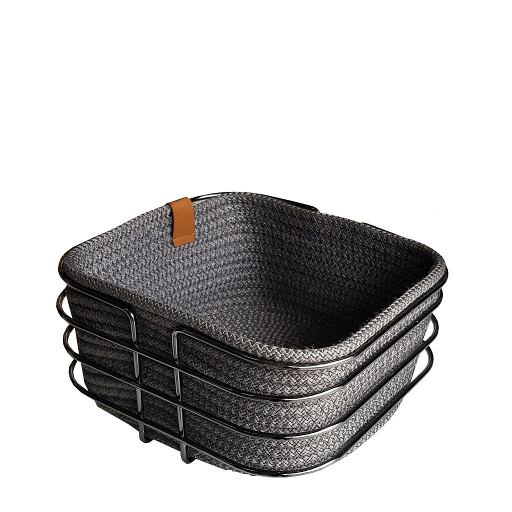 Ψωμιέρα Espiel ψάθινη τετράγωνη με μεταλλική βάση γκρι 21x21 cm