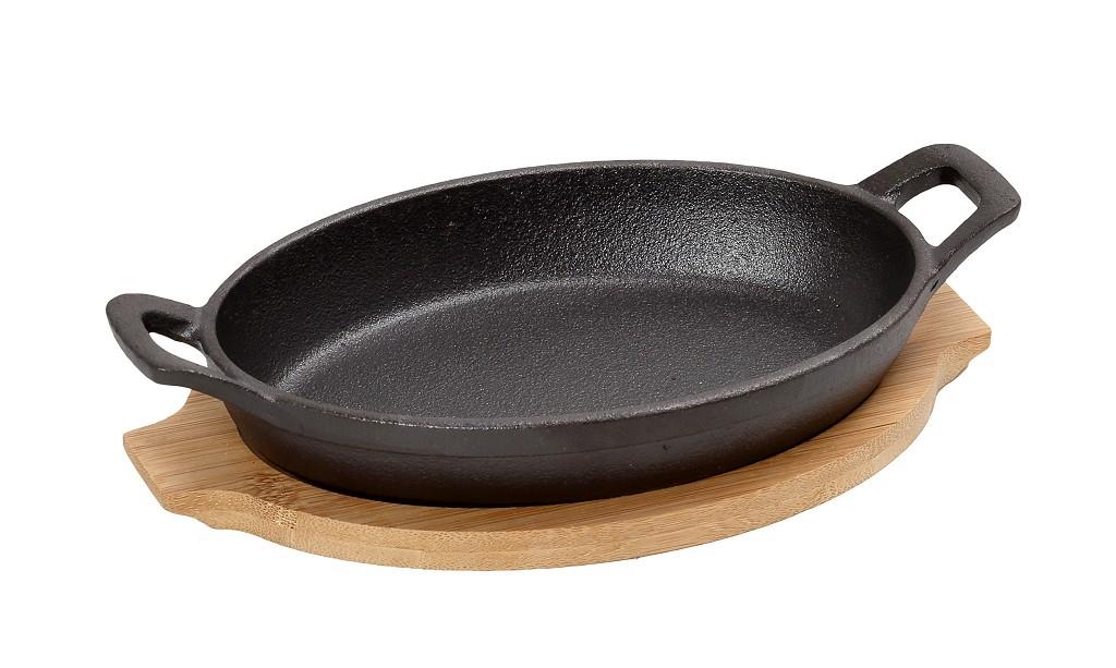 Σαγανάκι Espiel μαντεμένιο οβάλ με βάση bamboo μαύρο 300 ml 22x13x5 cm