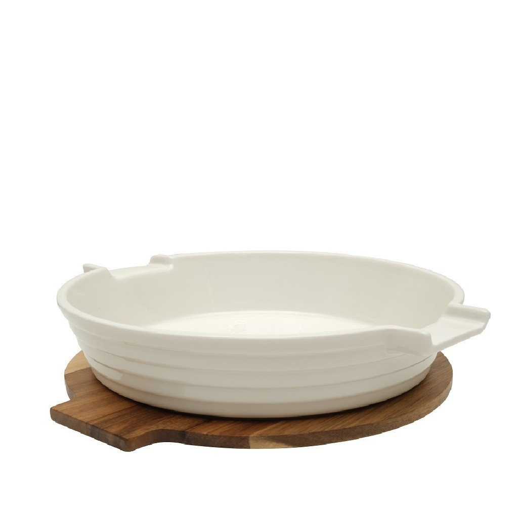 Σκεύος Espiel πορσελάνης στρογγυλό με ξύλινο καπάκι λευκό 33,3x30x6,3 cm