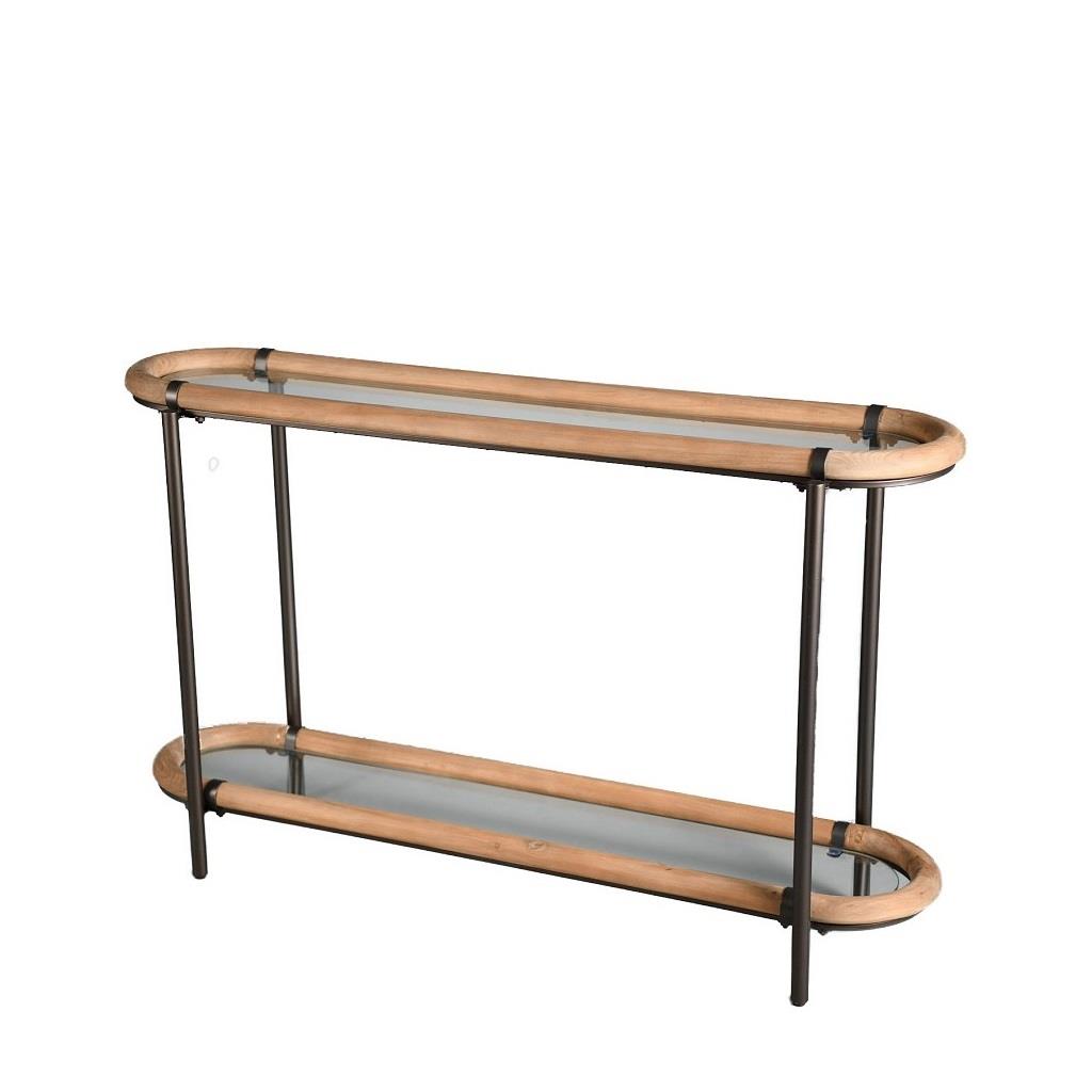 Κονσόλα Espiel γυάλινη ξύλινη περίμετρος και μεταλλική βάση φυσικό 131x36x81 cm