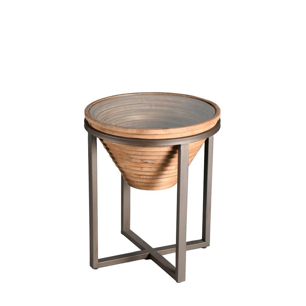 Τραπεζάκι Espiel ξύλινο με γυάλινη επιφάνεια στρογγυλό με μεταλλική βάση φυσικό 46x55,5 cm