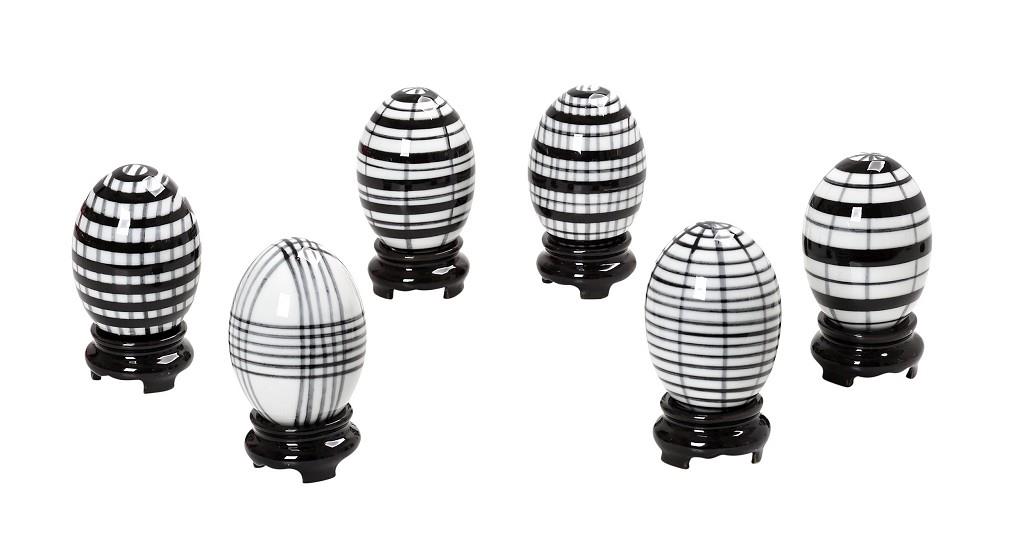 Αυγό Espiel πορσελάνης διακοσμητικό 6 σχέδια άσπρο - μαύρο 7x5 cm