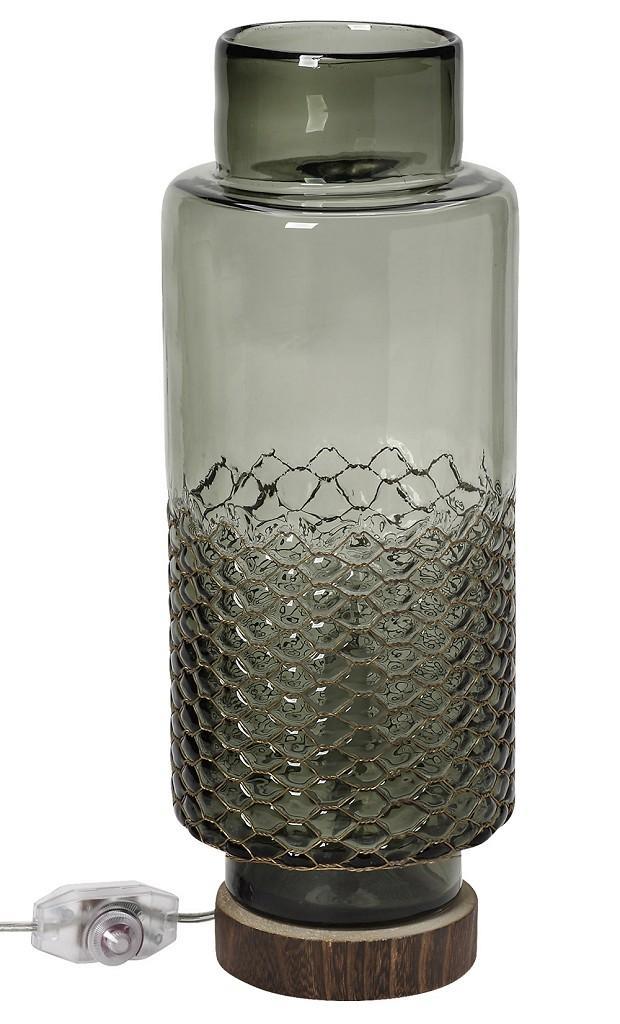 Λαμπατέρ Espiel γυάλινο με ξύλινη βάση πλέγμα φιμέ πράσινο 41,5x16,5 cm