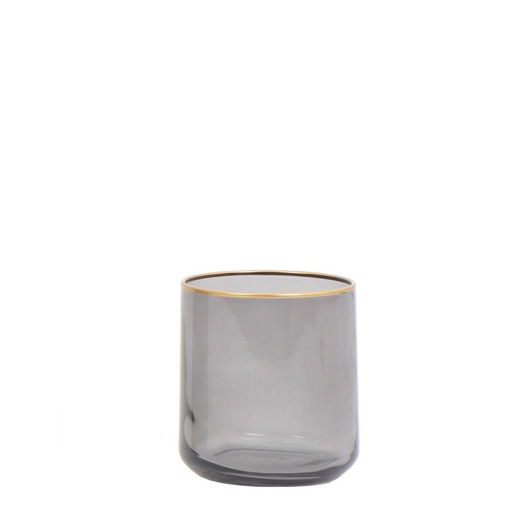Κηροπήγιο Espiel γυάλινο με χρυσό χείλος φιμέ γκρι 8x7x7 cm