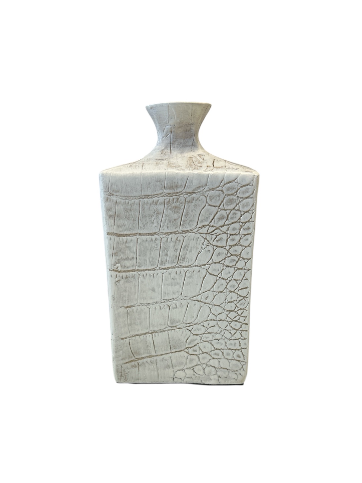 Βάζο Espiel πολυρεζίνης ανάγλυφο λευκό 8,5x4x15 cm