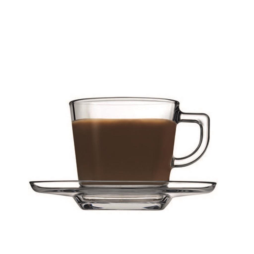 Φλιτζάνι Pasabahce γυάλινο δύσθραυστο καπουτσίνο με πιατάκι Carre διάφανο 215 ml 8x13,7 cm