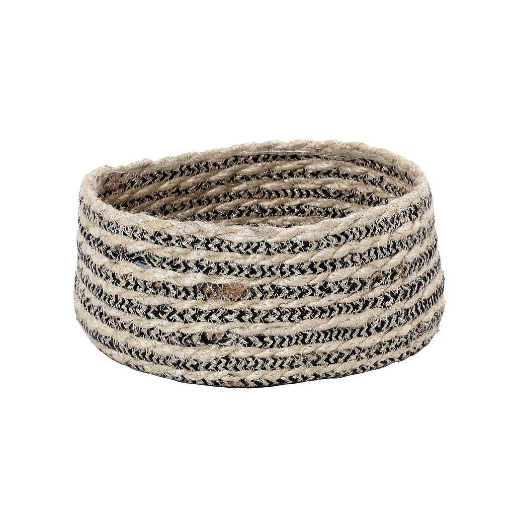 Καλάθι Espiel ψάθινο στρογγυλό μαύρο - λευκό 19x19x8 cm