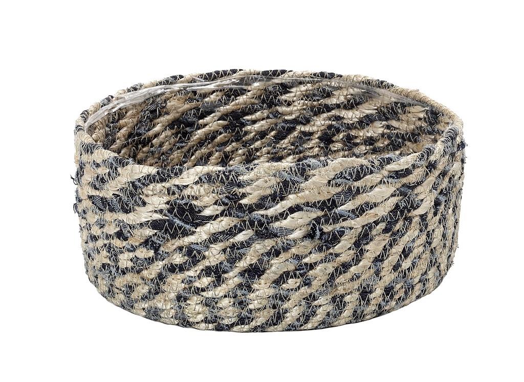 Καλάθι Espiel ψάθινο στρογγυλό μπλε - μαύρο 30x30x13 cm