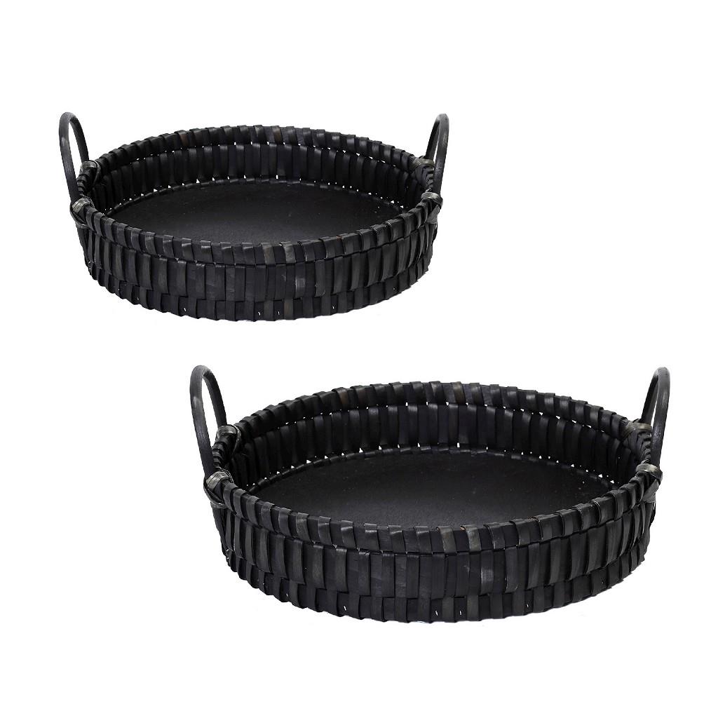 Καλάθι Espiel ψάθινο στρογγυλό σετ 2 τεμ. με λαβές μαύρο 41/35x9 cm
