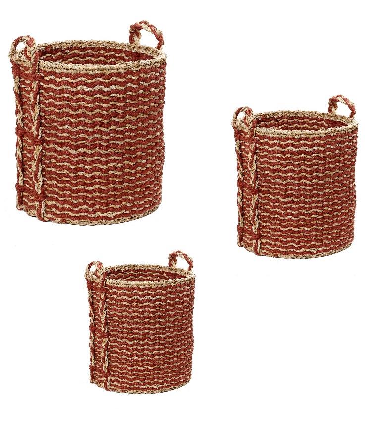 Καλάθι Espiel seagrass στρογγυλό σετ 3 τεμ. κεραμιδί 50-45-40 cm