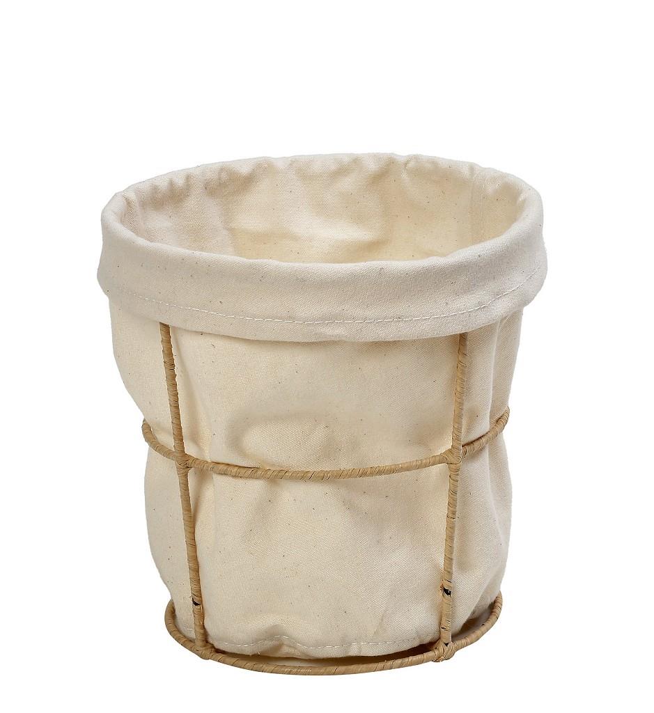 Καλάθι Espiel βαμβακερό στρογγυλό με ψάθινο stand κρεμ 15x15x12 cm