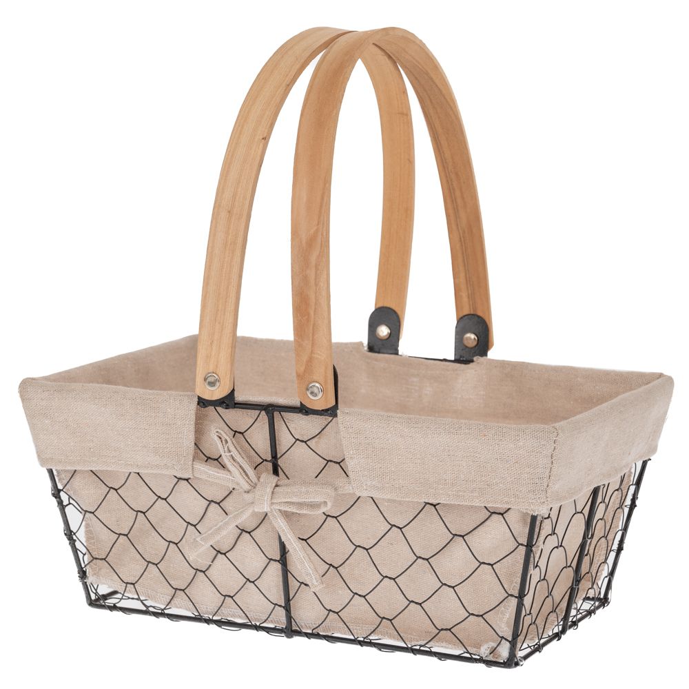 Καλάθι μεταλλικό στρογγυλό με ύφασμα και ξύλινο χερούλι Φ30x20x13 cm