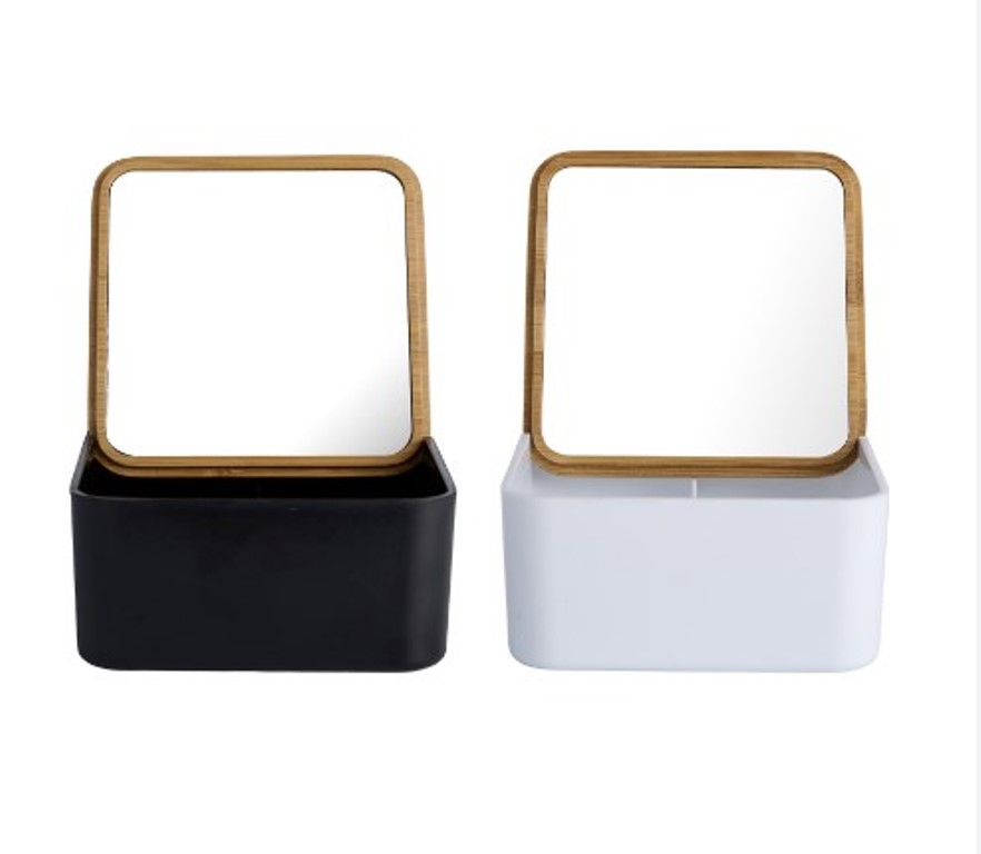 Κουτί Day bamboo αποθήκευσης με καθρέπτη σε 2 χρώματα 14x14x7 cm