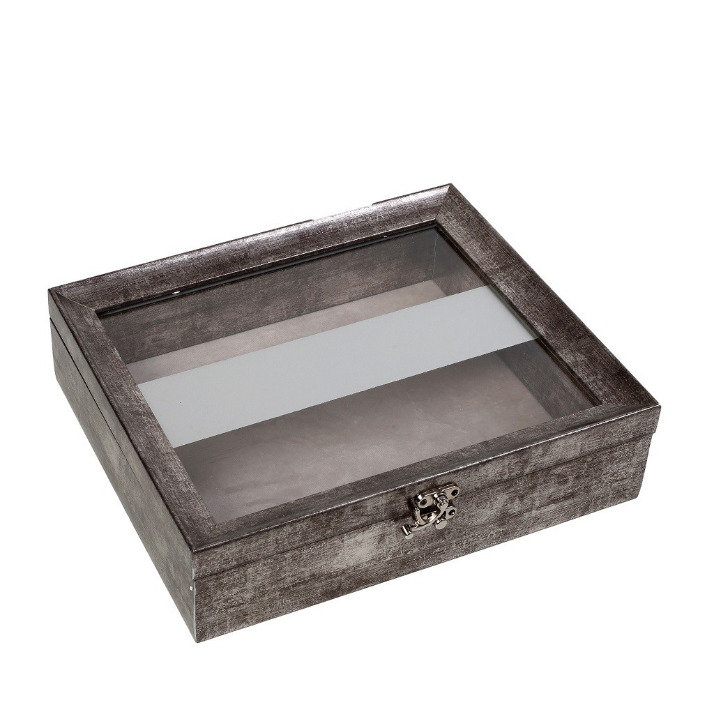 Κουτί Espiel πολυρεζίνης με γυάλινο καπάκι ασημί ρίγα γκρι 30x26x6 cm
