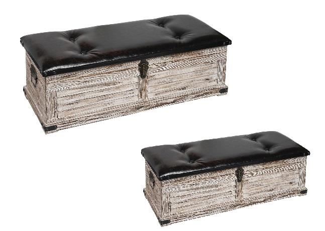 Μπαούλο Espiel ξύλινο σετ 2 τεμ μπεζ- καφέ 97 - 98 cm