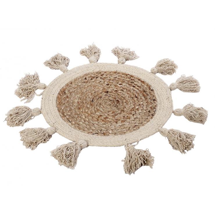 Σουπλά Espiel ψάθινο - βαμβακερή περίμετρος με κρόσια φυσικό 35 cm