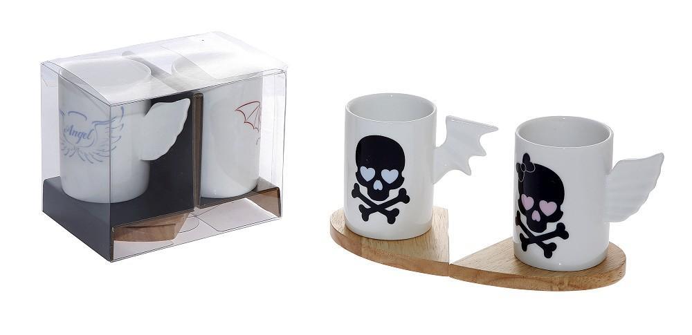 Κούπα Espiel πορσελάνινη εσπρέσσο σετ 2 τεμ. "scull" συμπ. σουβέρ bamboo 90ml 4,5x6,5 cm