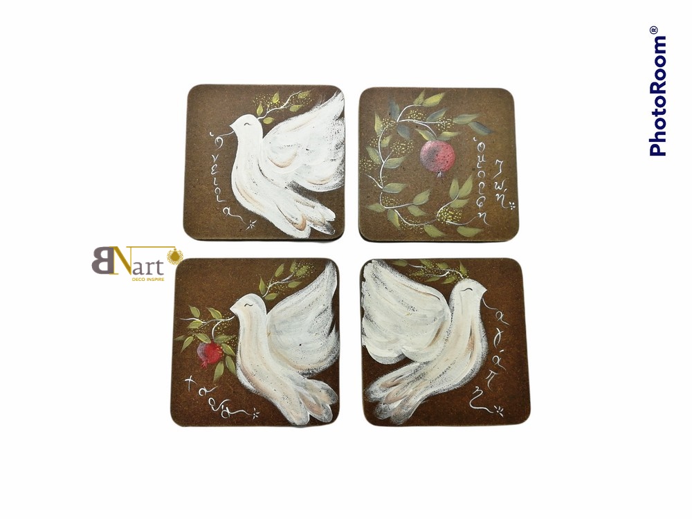Σουβέρ σετ 4 τεμ. σχέδιο Περιστέρια 10x10 cm