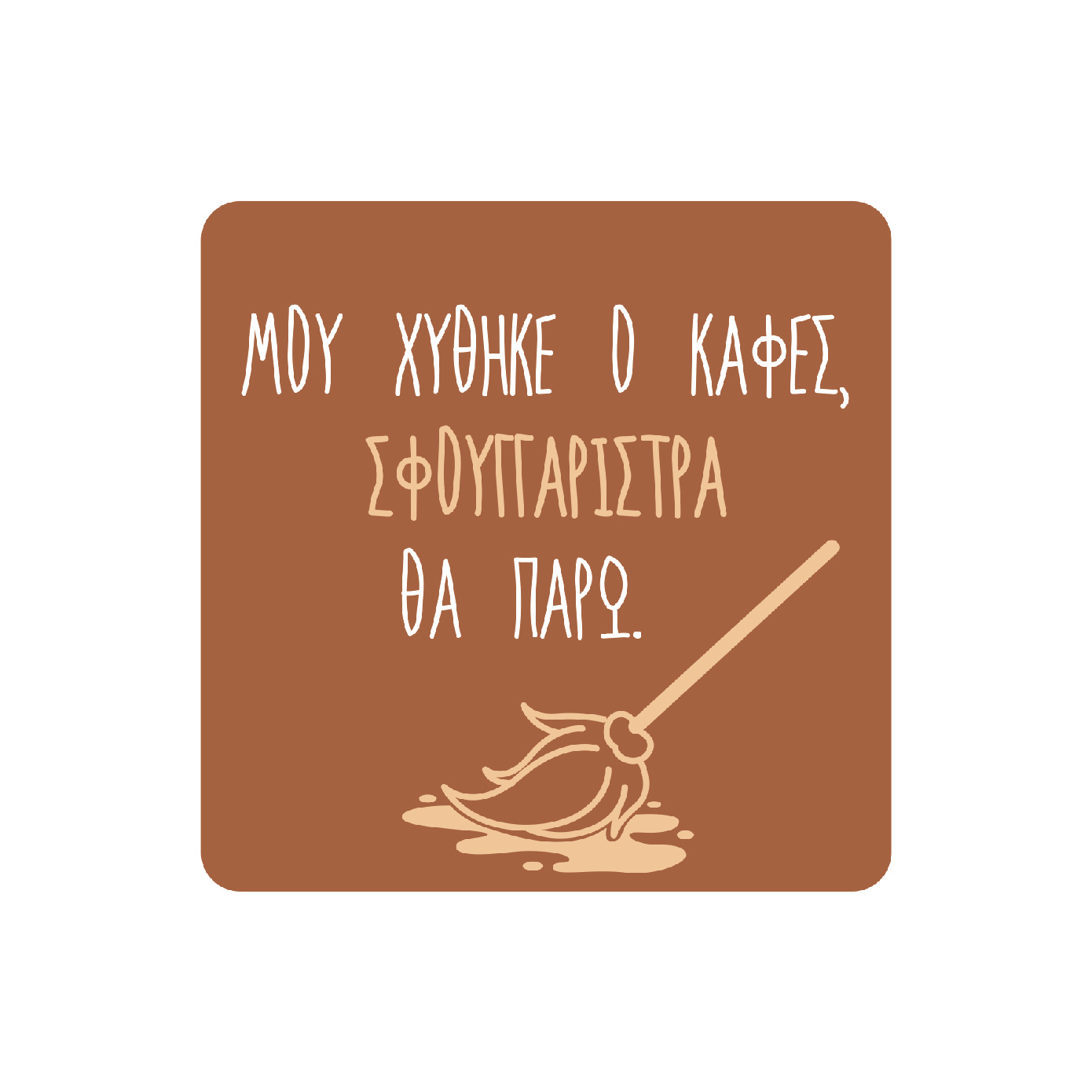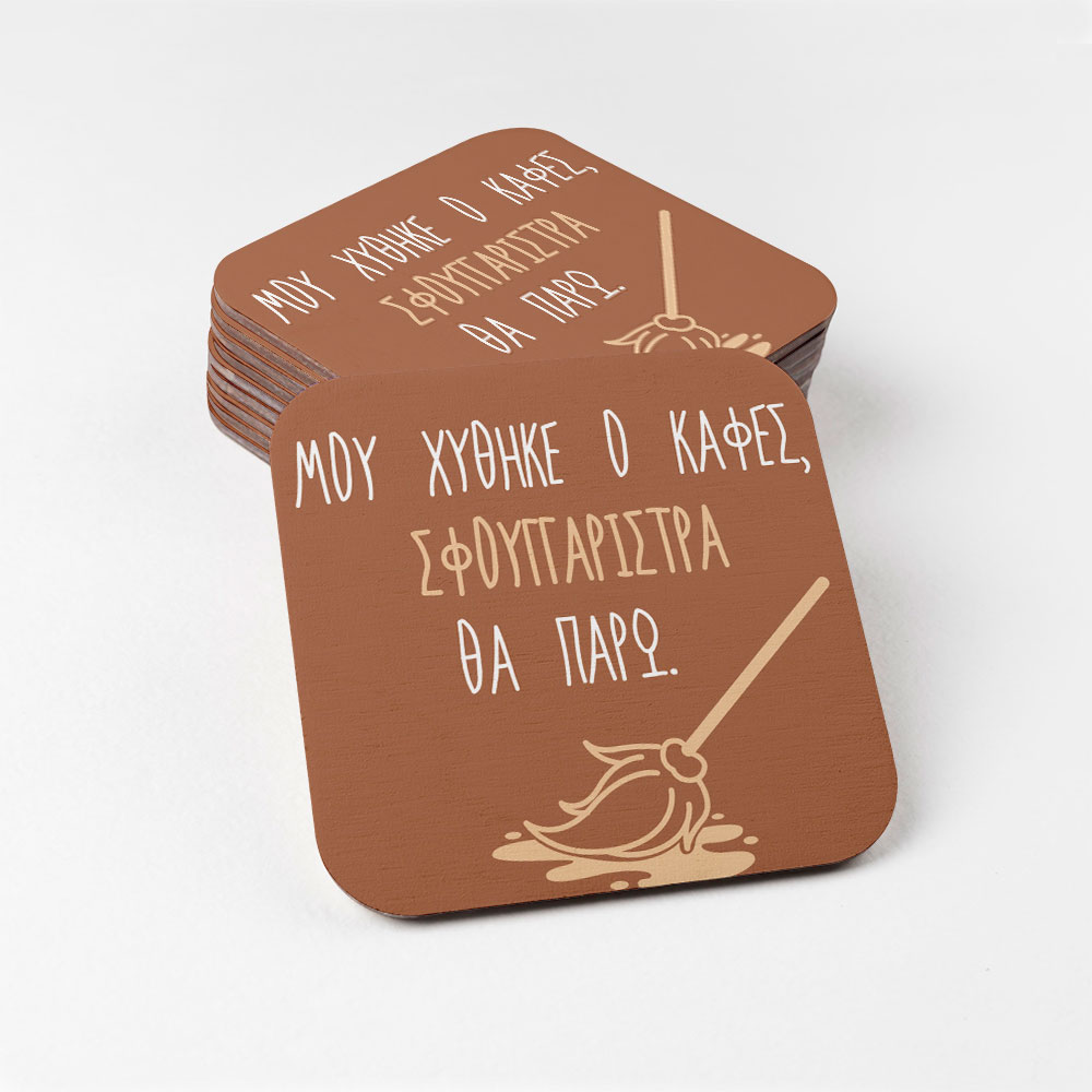 Σουβέρ τετράγωνο 9x9 cm - Μου χύθηκε ο καφές, Σφουγγαρίστρα θα πάρω