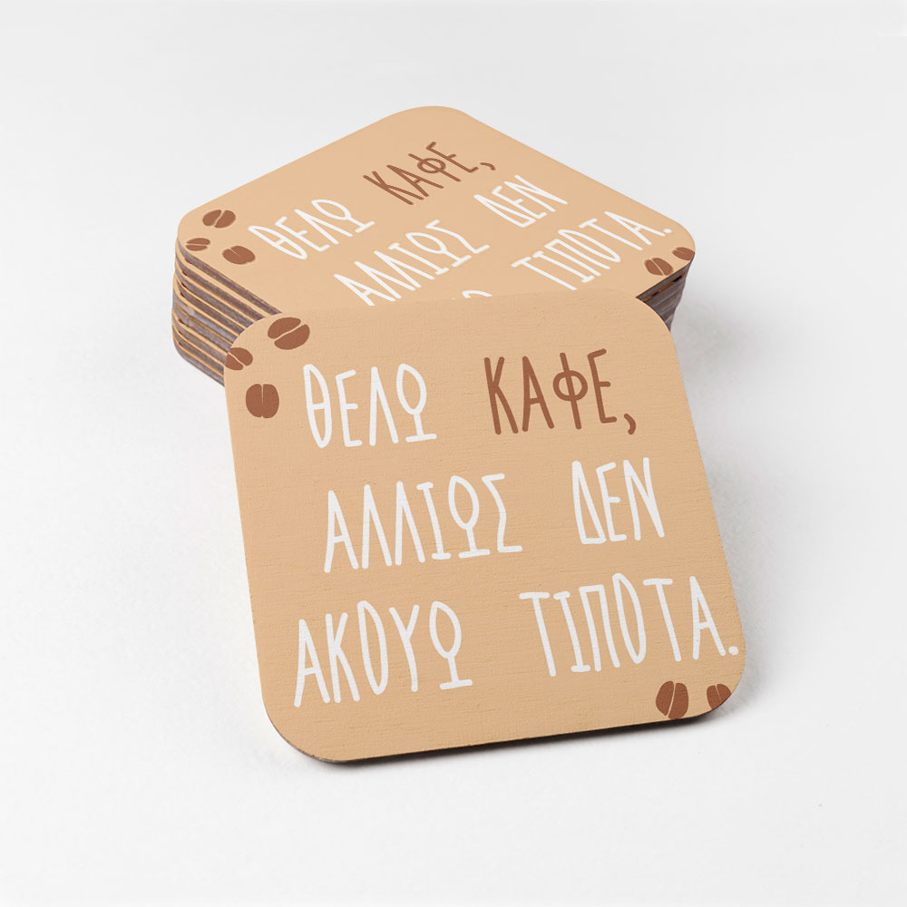 Σουβέρ τετράγωνο 9x9 cm - Θέλω καφέ, αλλιώς δεν ακούω τίποτα