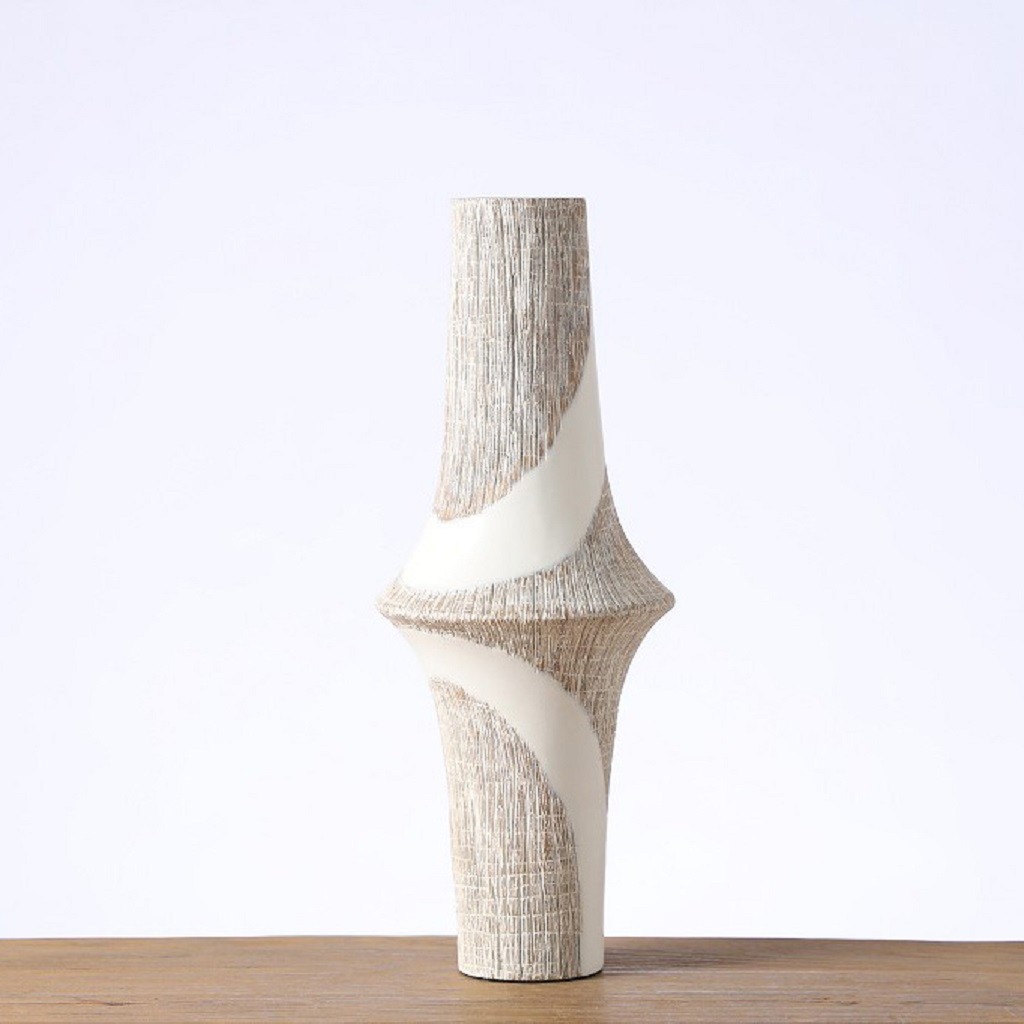 Βάζο Espiel πολυρεζίνης ανάγλυφο λευκό - μπεζ 18x18x47 cm