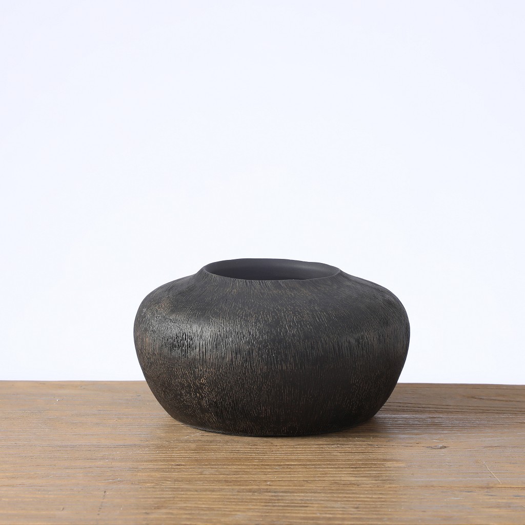 Βάζο Espiel πολυρεζίνης ανάγλυφο μαύρο 19x19x10,5 cm