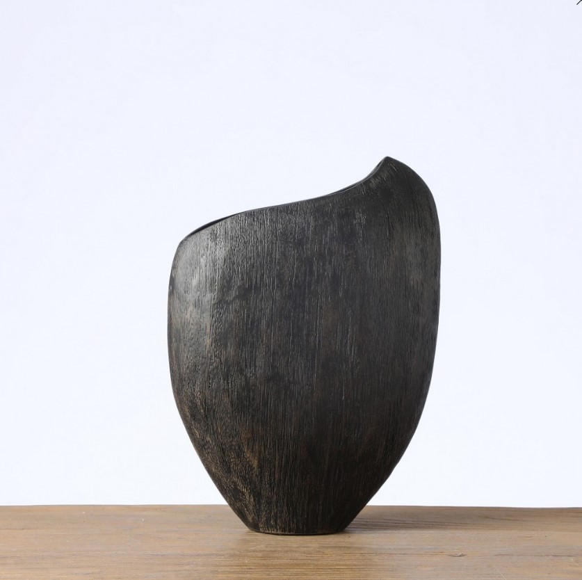 Βάζο Espiel πολυρεζίνης ανάγλυφο μαύρο 23x10x32 cm
