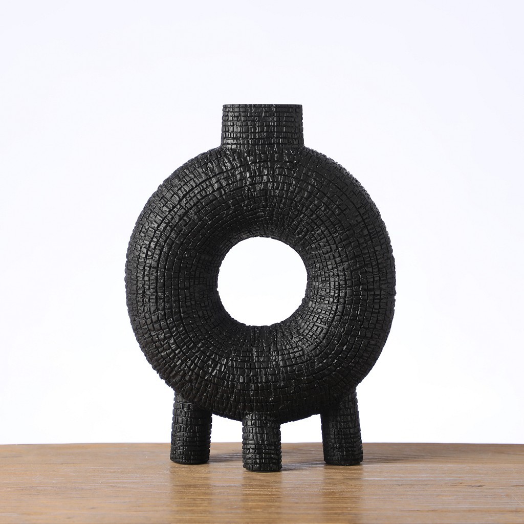 Βάζο Espiel πολυρεζίνης ανάγλυφο μαύρο 24x8x32 cm