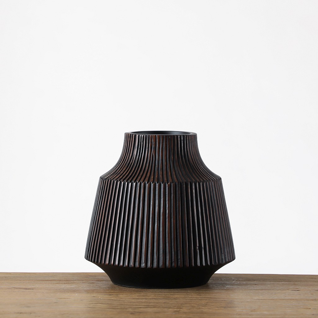 Βάζο Espiel πολυρεζίνης ανάγλυφο "ρίγα" καφέ 24,5x24,5x24,5 cm