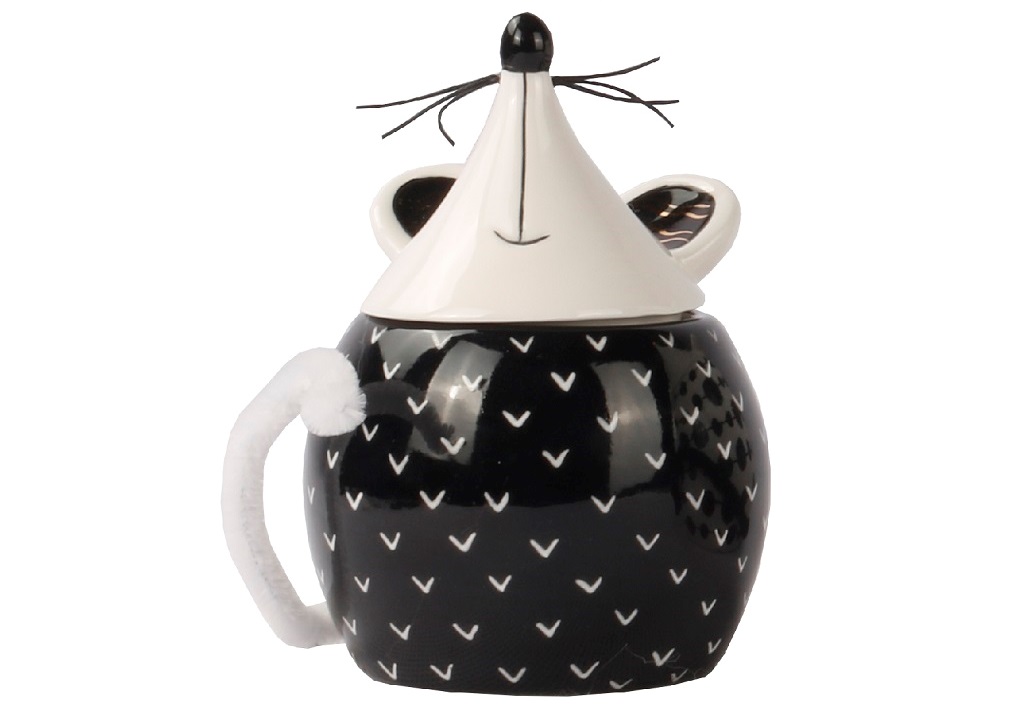 Βάζο Espiel πορσελάνης με καπάκι ποντίκι λευκό - μαύρο 15,3 cm
