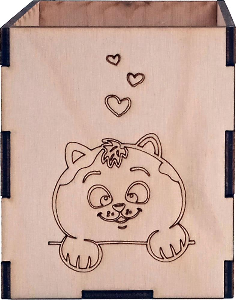 Μολυβοθήκη ξύλινη γάτα - καρδούλες