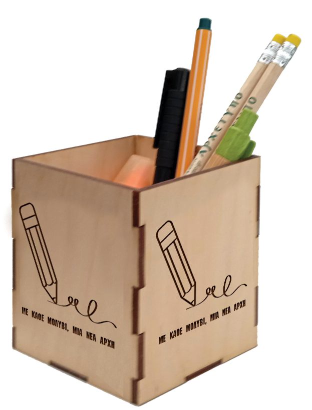 Μολυβοθήκη ξύλινη "Με κάθε μολύβι, μια νέα αρχή"