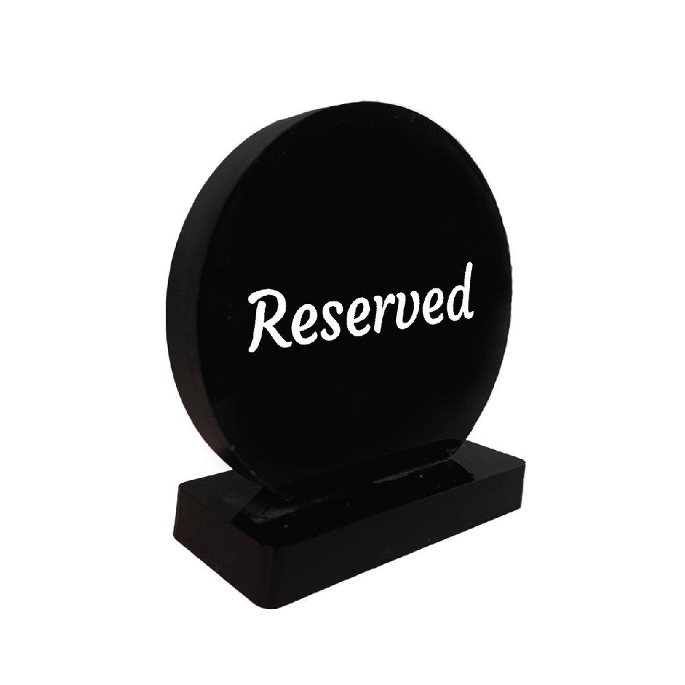 Πινακίδα Plexiglass στρογγυλό για τραπέζια "Reserved" 7x6,5 cm μαύρο