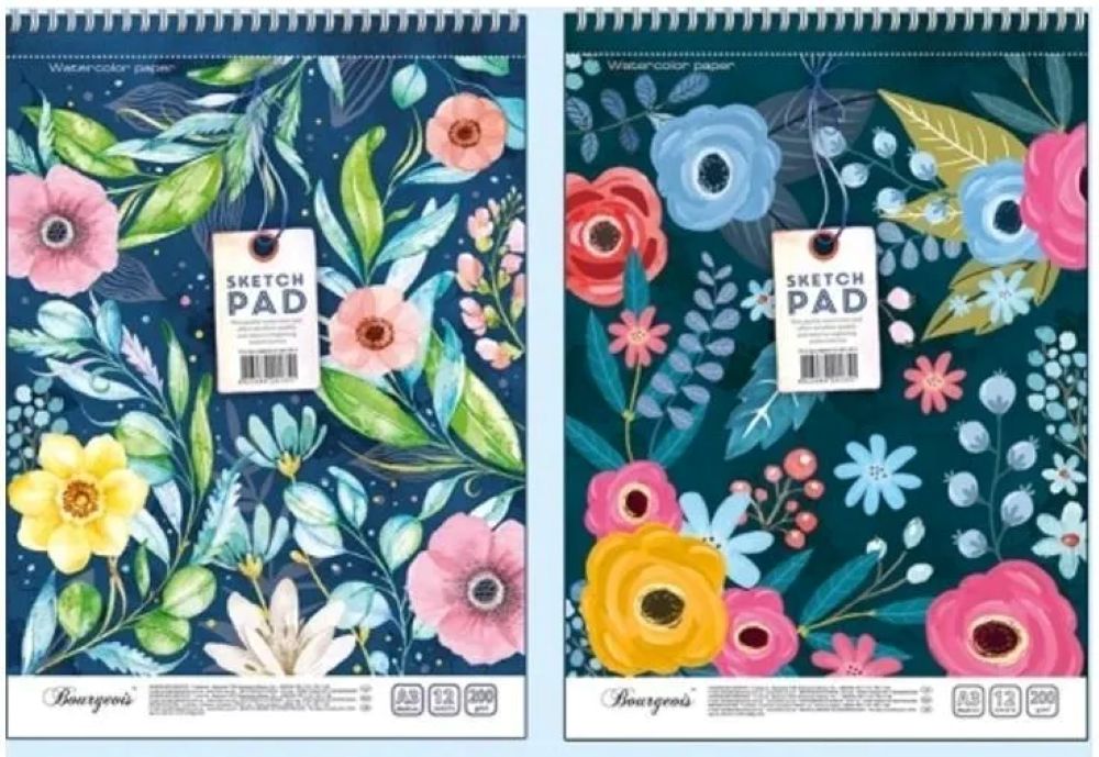 Μπλοκ ακουαρέλλας σπιράλ Α3 Bourgeois 12Φ 200 gr - 2 floral σχέδια