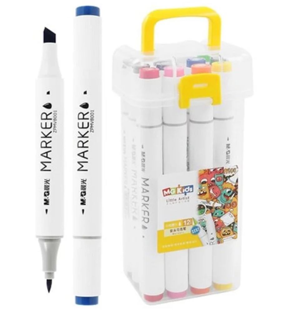 Μαρκαδόροι M&G kids ζωγραφικής με διπλή μύτη σετ 12 αποχρώσεις