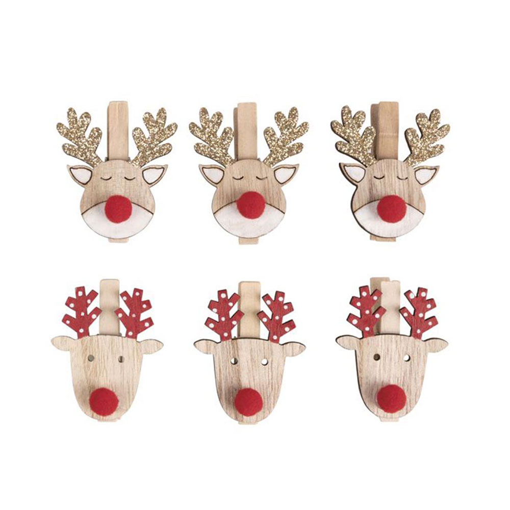 Μανταλάκια Rayher ξύλινα ελάφι & τάρανδος 4x4,8 cm 6 τεμ.
