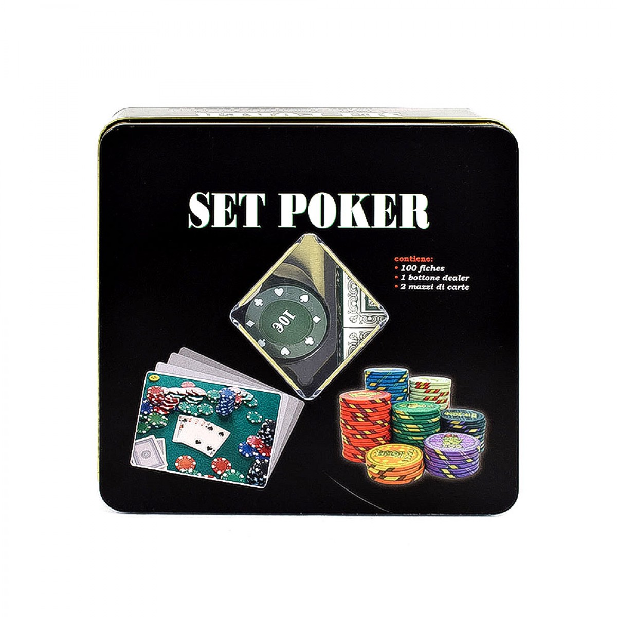 Μεταλλικό κουτί Poker μάρκες & 2 τράπουλες