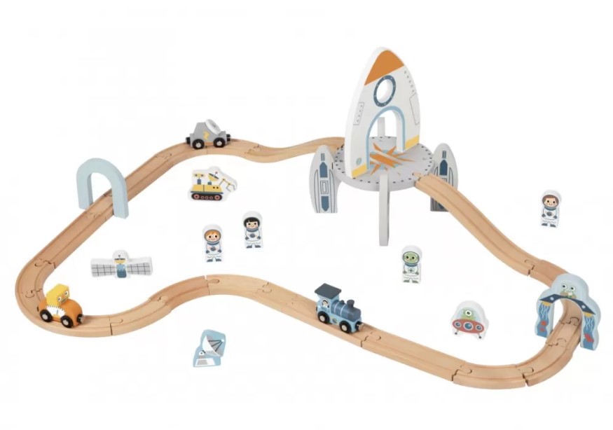 Ξύλινο σετ τρενάκι Tooky Toy - "Διαστημικός σταθμός"