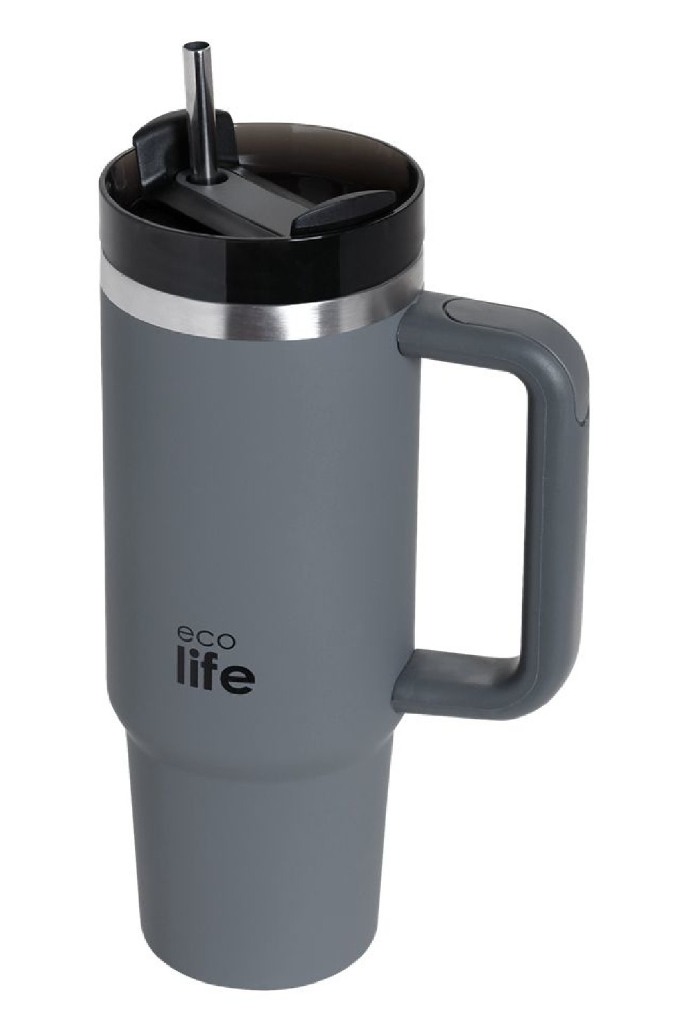 Ποτήρι Θερμός ανοξείδωτο Ecolife με καλαμάκι 900 ml - Grey