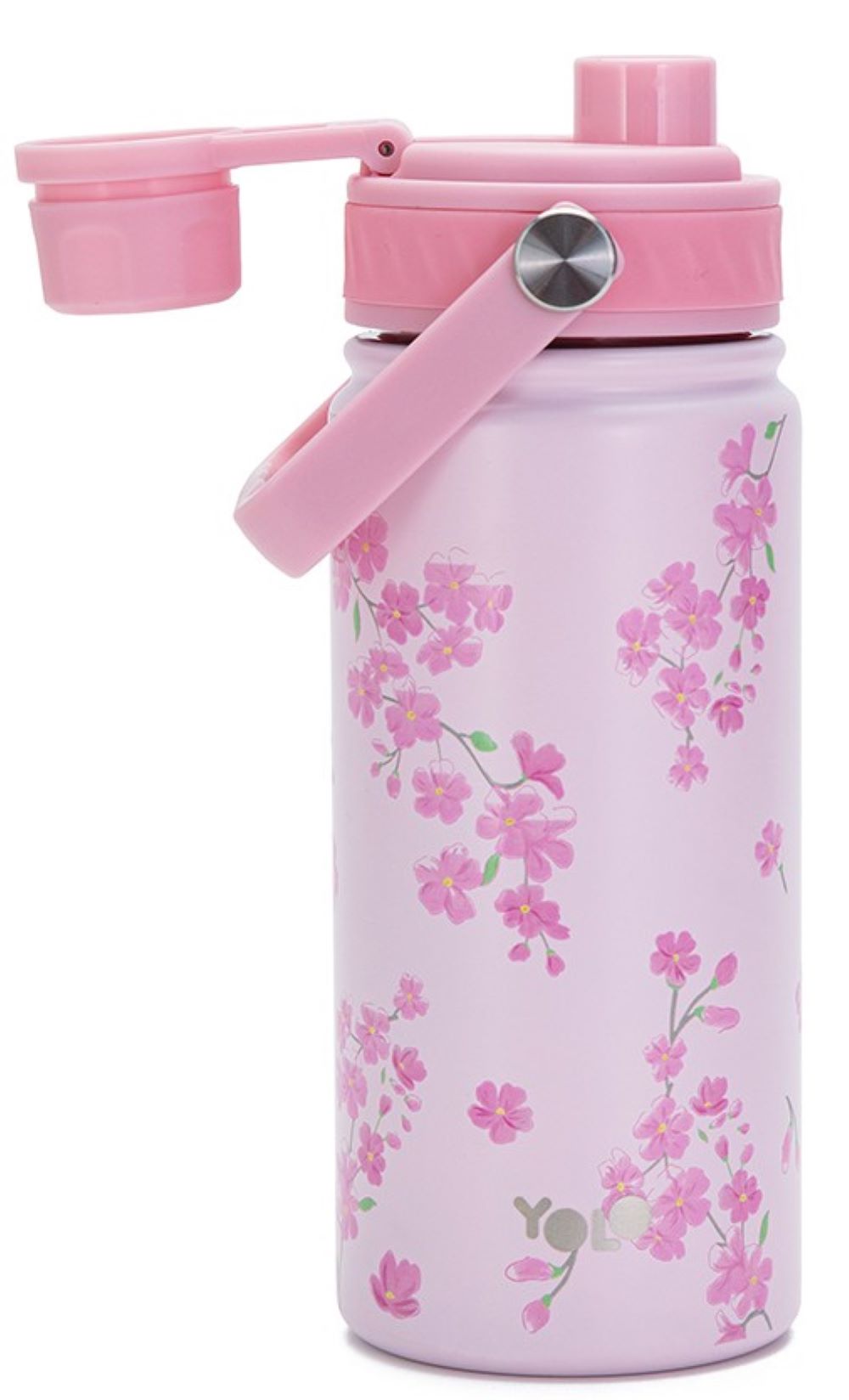 Μπουκάλι θερμός μεταλλικό Yolo με στόμιο και λαβή Pink Blossom 500 ml