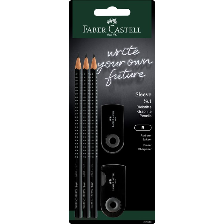 Σετ Faber Castell 3 Μολύβια Grip, ξύστρα και γόμα μαύρο
