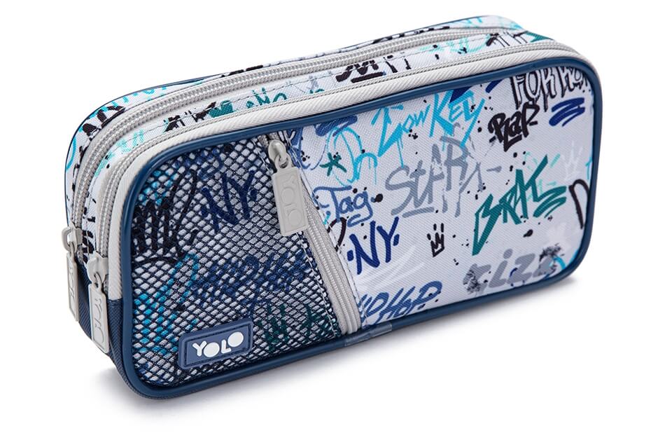 Κασετίνα Box διπλή Yolo – Graffiti Grey