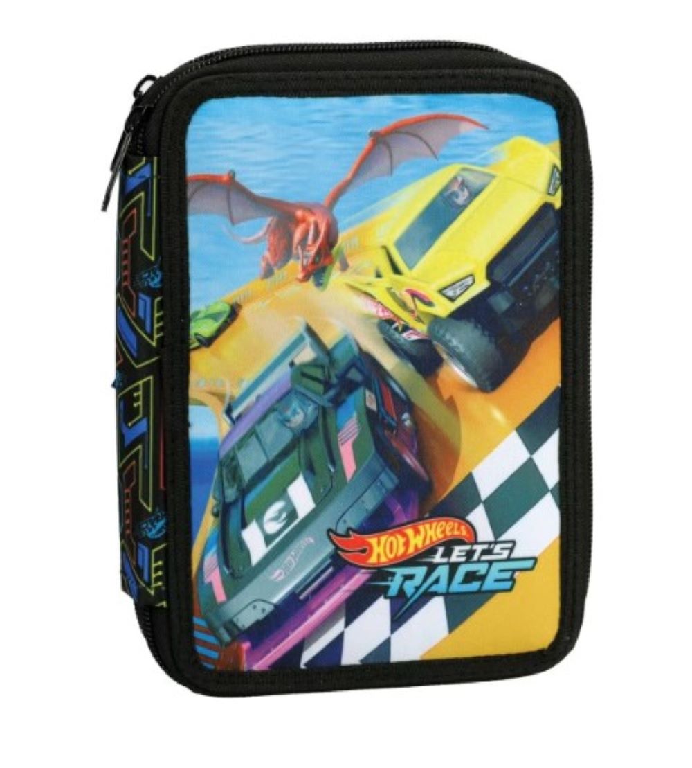 Κασετίνα Gim διπλή γεμάτη με 2 θήκες Hot Wheels Lets Race