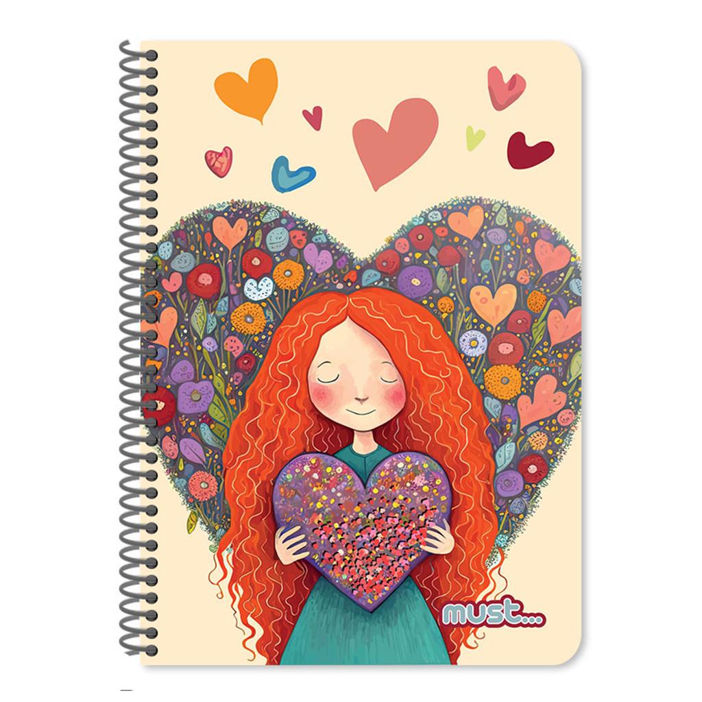 Τετράδιο σπιράλ Μust Α4 3 θεμάτων 90Φ Hearts