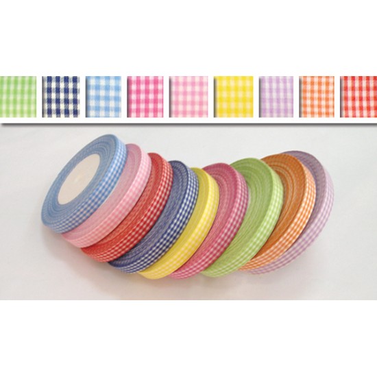 Κορδέλα καρό υφασμάτινη 1,2 cm x 50 m ροζ