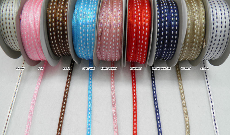 Κορδέλα υφασμάτινη γκρό με ραφή ροζ 0,3 cm 25 y