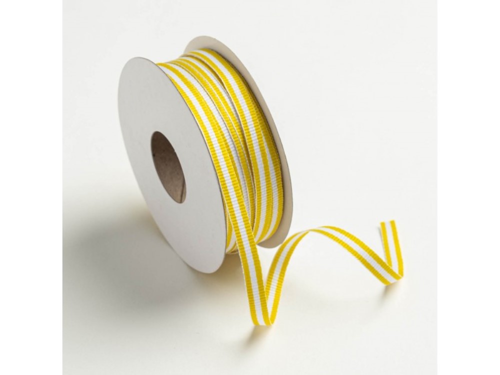 Κορδέλα υφασμάτινη ριγέ 5 mm, 20 m εκρού - κίτρινο