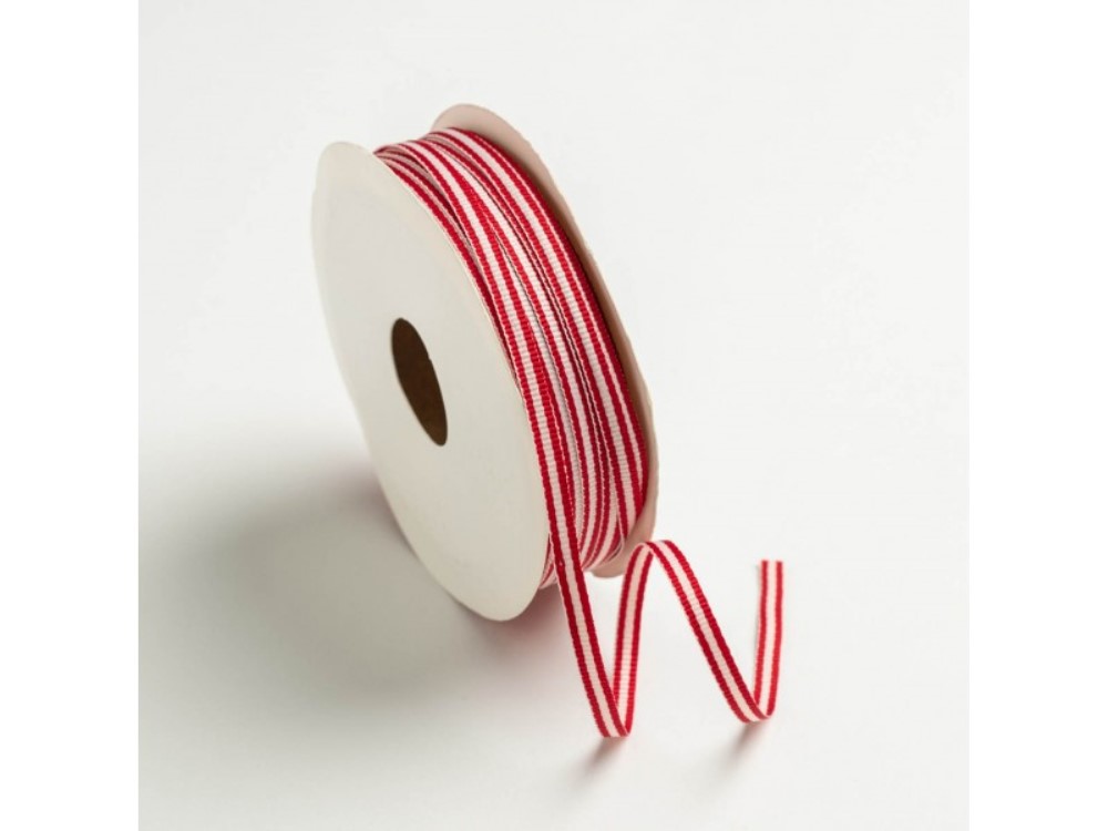 Κορδέλα υφασμάτινη ριγέ 5 mm, 20 m εκρού - κόκκινο
