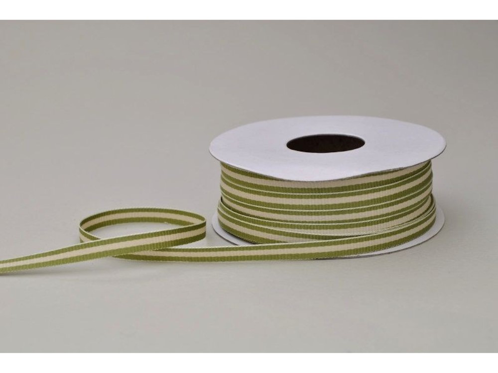 Κορδέλα υφασμάτινη ριγέ 5 mm, 20 m εκρού - πράσινο